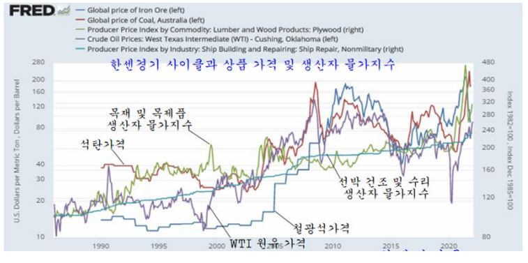 부동산은 광물가격에도 연관이 있어 원자재 상승과 해운운임 상승으로 이어지며 조선산업에 호황이 올 수 있습니다. 그러나 원자재 급등발 스태그플레이션을 만들어 낼 가능성이 있습니다. 부동산과 조선은 대출을 많이 발생시켜 은행및 증권주에 호황이 올 수 있습니다.