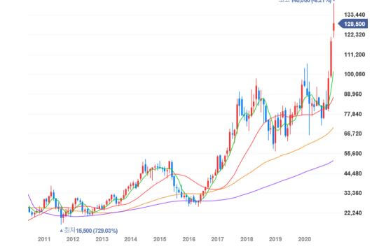 대한유화 화학주는 07년 ▶17년(10년 주기 정상사이클), 11년 ▶ 21년(특수사이클)로 화학은 중국경기와 연관이 높고 주가 변동이 심한 편입니다.