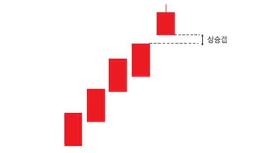 상승중에 갭이 발생하였을때는 매도 신호라고 볼수 있습니다.