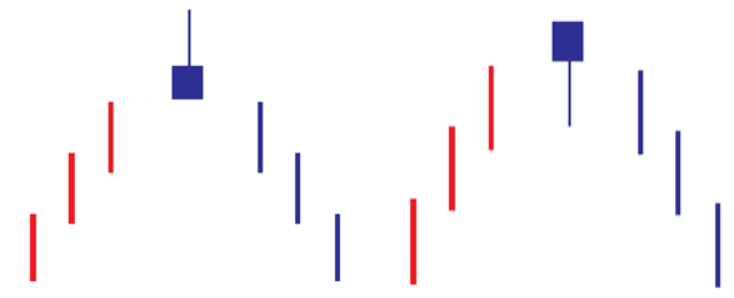 주가가 오른 상태에서 긴 피뢰침같은 모습을 하고 있습니다.