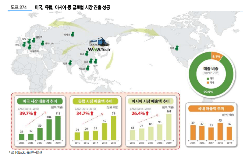 또한 비나텍은 지난 12월 수소연료전지 분리판 제조사인 에이스 크리에이션을 인수하였습니다. 분리판은 막전극접합체 위에 덧대는 용도로 활용되며, 주변장치와 결합해 수소연료전지 스택(stack)을 완성하게 됩니다. 스택은 수소연료전지의 핵심 부품으로 전기를 만들어내는 역할로 수소차 전체 원가에서 스택이 차지하는 비중이 약 40~50%로 알려져 있습니다. 이 스택에 필수적으로 들어가는 부품이 막전극 접합 체다. 비나텍이 에이스 크리에이션을 인수 함으로써 지지체, 촉매, 막전극접합체와 분리판까지 일괄 생산하는 유일 기업이 되었습니다.