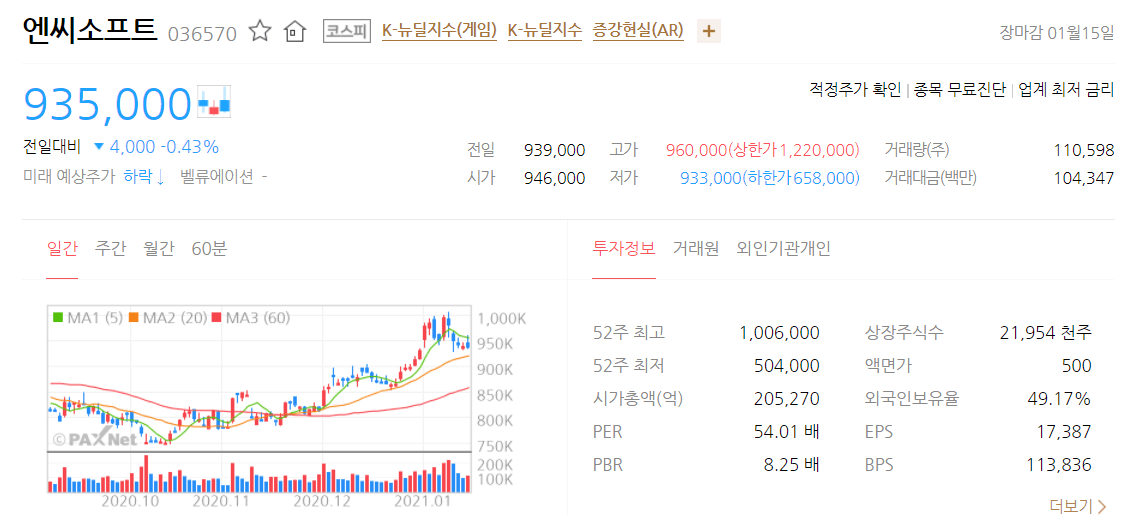 엔씨소프트는 국내 대표 AI 기업 중 하나로 150여 명의 전문 인력 보유하고 있고 야구 구단 엔씨 다이노스를 통해 프로야구단을 운영하고 있는데 이번 시즌 우승 또한 동사의 데이터 분석 역량이 상당 부분 기여한 것으로 알려져 있습니다.. 우수한 AI 역량 기반으로 금융, 엔터테인먼트 플랫폼 등 다양한 분야로 확장을 하고 있습니다