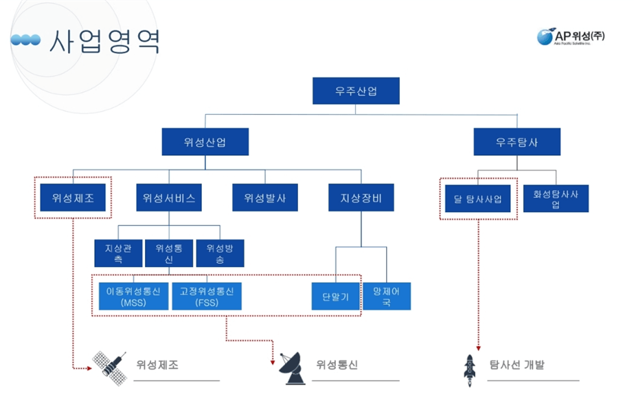 이사업에 있어서는 AP위성은 국내 유일의 실용급 위성 자료 처리장치 국산화 업체로 EO/IR 위성 탑 체제 개발 SAR 위성탑체제 SAR센서 DLS 개발에 참여할 계획입니다